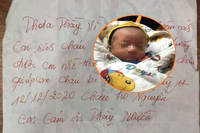 Nội dung bức thư ghi rõ: "Thưa thầy, vì điều kiện hoàn cảnh con sinh cháu mà không nuôi dưỡng được, con nhờ thầy làm phúc nuôi giúp con. Cháu trai, sinh ngày 12/12/2020, cháu họ Nguyễn. Con cảm ơn thầy nhiều".