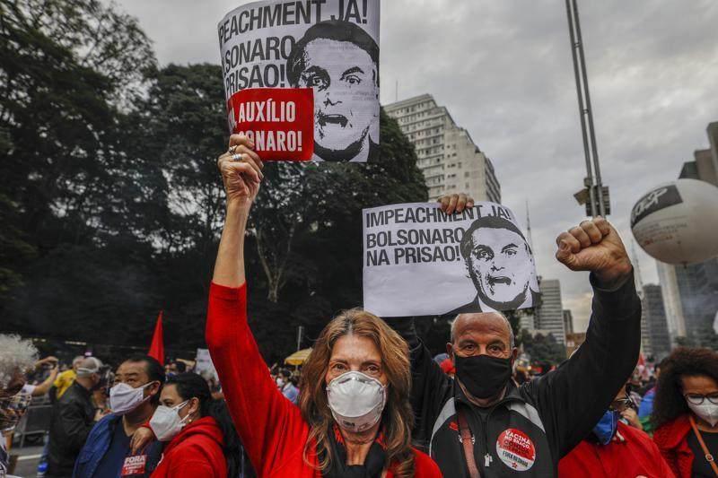 Nhiều người biểu tình giơ cao áp phích viết “500.000 người đã chết. Đó là lỗi của ông ấy”, để ám chỉ Tổng thống Bolsonaro.