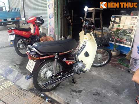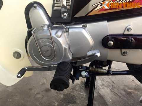 | Bưởng máy của chiếc Dream này vẫn còn mới tinh, hoàn toàn không có một vết xước và lấp lánh ánh nhũ bạc như mới rời khỏi nhà máy của Honda Thái Lan. |
