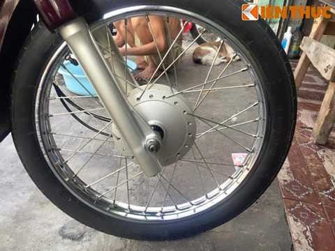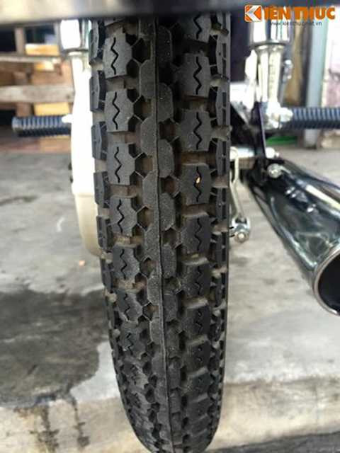 | Cả 2 lốp vẫn còn giữ lại nguyên gai gió và được sản xuất bởi hãng phụ tùng Inoue của Thái Lan. Trong khi đó, cặp vành được sản xuất bởi Siam Goshi. |