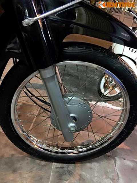 | Mọi chi tiết trên xe đều hoàn toàn nguyên bản, bao gồm cả cặp lốp được lắp sẵn từ nhà máy PT Astra của Honda tại Indonesia. Phần yếm xe đã ngả sang màu ngà theo thời gian, tuy nhiên đầy là chất màu được những người sưu tập xe đánh giá cao do chỉ có loại yếm "xịn" theo xe đời cũ mới có thể ngả sang màu này. |