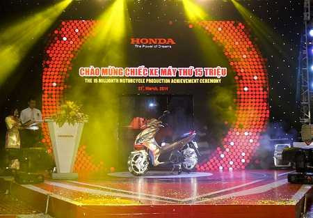 (VTC News) - Honda Việt Nam đã tổ chức lễ khánh thành, đưa phân xưởng sản xuất Piston đi vào hoạt động và sau đó 01 ngày, vào ngày 21 tháng 03 năm 2014, Công ty tiếp tục chào mừng chiếc xe máy thứ 15 triệu được sản xuất tại Việt Nam.