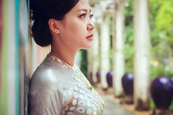 Hồng Ánh đẹp trầm mặc, cổ điển trong áo dài Lê Thanh Phương. Nữ diễn viên Hồng Ánh thể hiện trọn vẹn tâm hồn của những chiếc áo mà nhà thiết kế Lê Thanh Phương