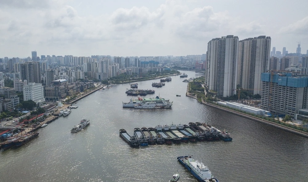 Tàu thuyền neo đậu tránh bão Yagi tại tỉnh Hải Nam, Trung Quốc ngày 4/9/2024. (Ảnh: THX/TTXVN)