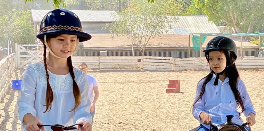 Sau thời gian tập luyện, nữ ca sĩ Hồng Nhung tiết lộ, hai con của chị đã có thể cưỡi ngựa và đi chậm được.