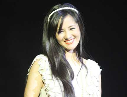 | Khán giả Hà Nội rất yêu mến Hồng Nhung. Sau mỗi bài hát, họ đều dành cho Bống những tràng vỗ tay dài. |