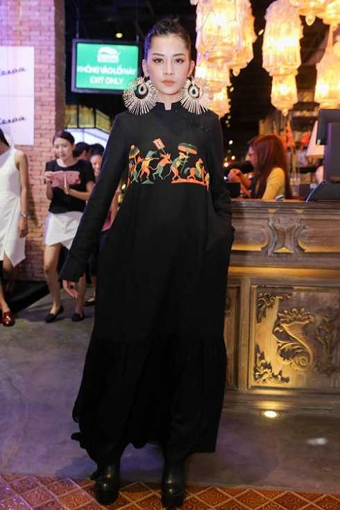 | Vóc dáng của Chi Pu càng trở nên nhỏ bé trong bộ váy rộng màu đen. |