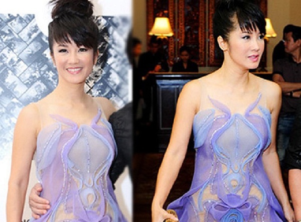 Hồng Nhung lại cưa sừng làm nghé, diện trang phục trong suốt khá kệch cỡm.