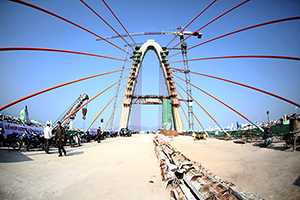 Tính đến thời điểm hiện tại, khối lượng công việc hoàn thành hơn 92% (kể cả phần khối lượng tăng thêm 30% do phát sinh trục 1 Tây Bắc và tháp dây văng). Hệ thống mố, trụ; nhịp; đường dẫn đầu cầu và đường gom...đã hoàn thành 100% khối lượng theo thiết kế.