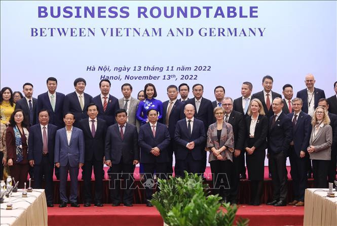 Hội nghị bàn tròn doanh nghiệp Việt Nam - Đức diễn ra tối 13/11, tại Trung tâm hội nghị quốc tế, dưới sự chủ trì Thủ tướng Chính phủ Phạm Minh Chính và Thủ tướng Đức Olaf Scholz. Cùng dự có một số lãnh đạo cấp cao Cộng hòa Liên bang Đức; lãnh đạo một số bộ, ngành của Việt Nam và đông đảo cộng đồng doanh nghiệp hai nước.