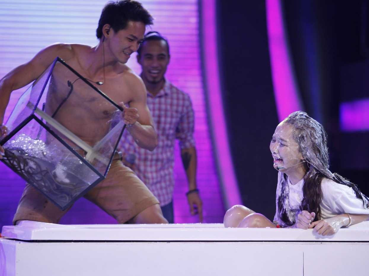 Thảo My tiếp tục bị treo lên, vừa hát vừa bị đấm đá như bao tải