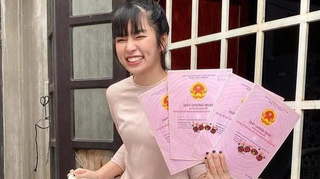 Đỗ Khánh Vân và 4 cuốn sổ đỏ trên tay đang được xem là màn lì xì hoành tráng nhất dịp Tết năm nay.