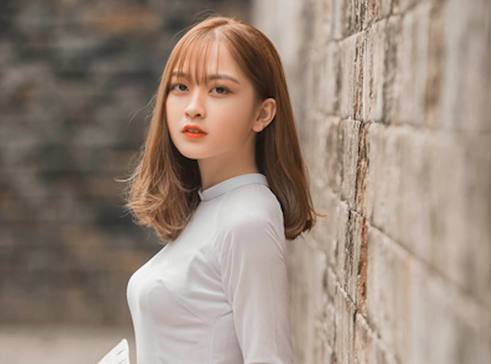 Thu Thủy khiến người đối diện xao xuyến bởi nụ cười tươi rạng ngời. Thủy thích chụp cùng tà áo dài truyền thống, bởi cô cảm thấy tự tin và thoải mái. (Ảnh: Kiên Ka Ka)