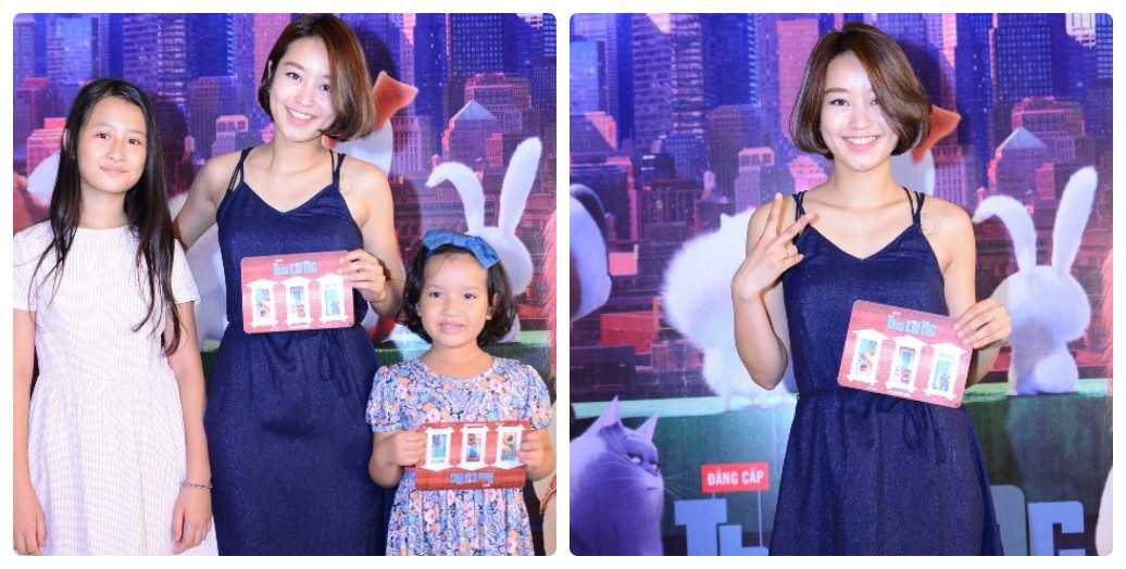 Mi Vân đưa con gái Bào Ngư (bên phải) tới buổi ra mắt phim "Đẳng cấp thú cưng" vào sáng 26/6. Đây là một trong những lần hiếm hoi, cô và con gái xuất hiện tại sự kiện có sự tham dự của giới truyền thông. Trước đó, cô thường chỉ chia sẻ hình ảnh hai mẹ con trên trang cá nhân.