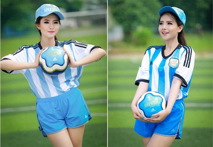 Trước giờ bóng lăn ở Arena de Sao Paulo, hot girl Việt mê mẩn Messi và các đồng đội lại 'ra sân' cổ vũ cho M10.