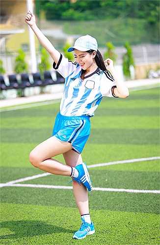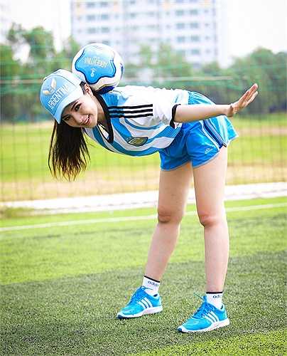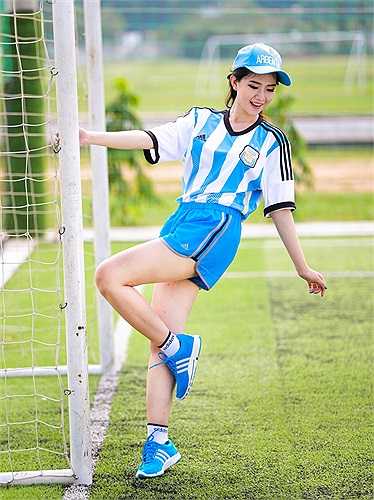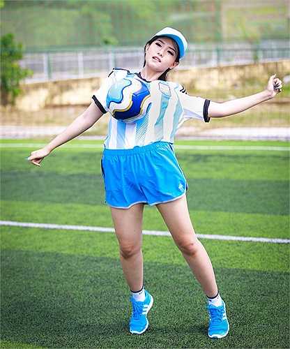 Hot girl này diện lại bộ trang phục thi đấu của đội bóng xứ tango những thập niên 80 của thế kỷ trước.