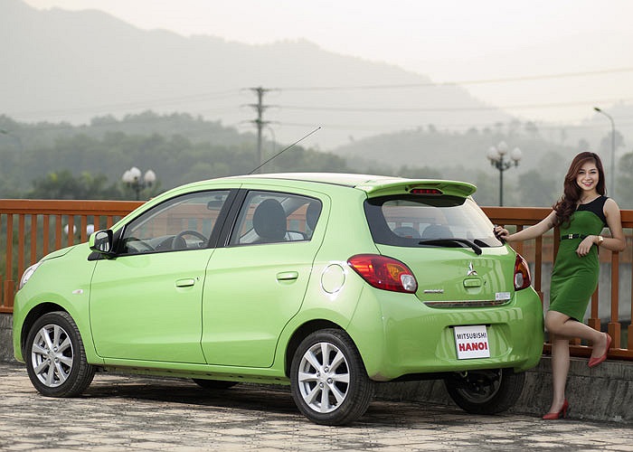 (VTC News) – Trong sắc nắng nhẹ cuối thu, cặp đôi xe nhỏ Mitsubishi Mirage và hot girl xinh đẹp cùng nhau tạo dáng khoe sắc. Ảnh HT, mẫu: Vân Anh.