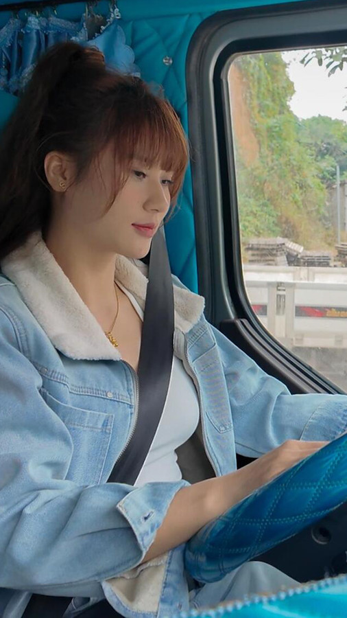 Cô gái xinh đẹp lái xe tải cừ khôi trên đường