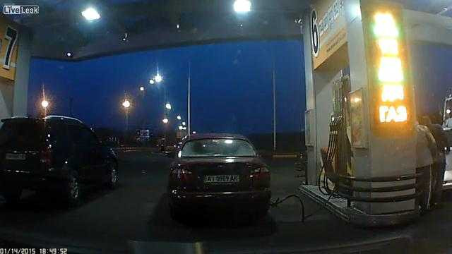 Chiếc ô tô đi mà chưa rút vòi bơm ở xây xăng, rất may chưa gây ra hậu quả nghiêm trọng.