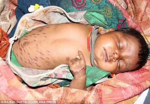 (VTC News) – Bé Shivani, 2 tháng tuổi, người Ấn Độ suýt chết vì làm theo hủ tục dùng dao nóng cọ vào người để chữa bệnh.