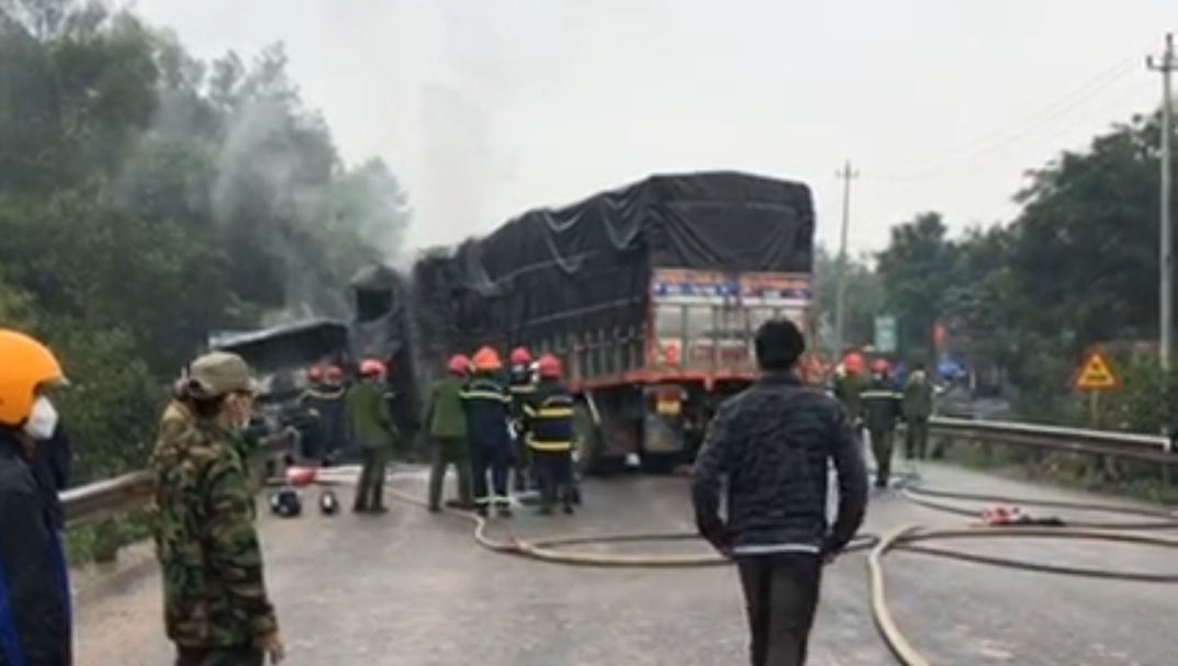 Cú va chạm mạnh khiến cho đầu hai xe bốc cháy dữ dội, hư hỏng nặng. Nhận được tin báo, lực lượng Cảnh sát Phòng cháy chữa cháy và Cứu hộ cứu nạn, Cảnh sát giao thông Công an tỉnh Thừa Thiên – Huế có mặt để dập tắt ngọn lửa, đưa tài xế mắc kẹt trong cabin xe 17H-000.77 ra ngoài.