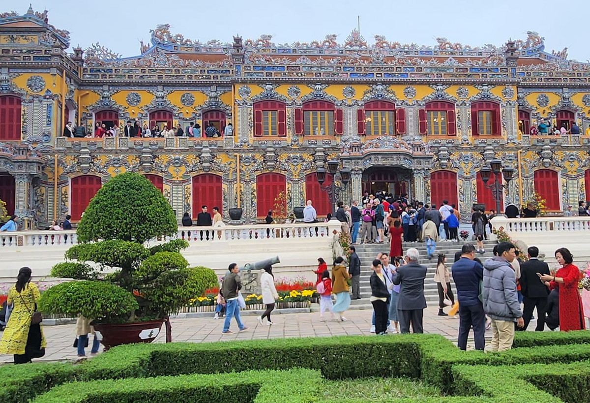 Riêng trong ngày mùng 3 Tết (12/02) được xác định là thời gian cao điểm nhất, các điểm di tích do Trung tâm Bảo tồn di tích Cố đô Huế đón 49.012 lượt, gồm 4.355 lượt khách quốc tế và 44.657 lượt khách nội địa và người địa phương.