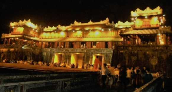Ngọ môn Đại Nội Huế được chiếu sáng về đêm - Ảnh: N.V