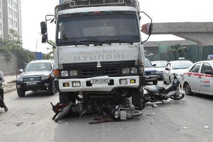 Theo những người chứng kiến, khi 3 chiếc xe máy đang lưu thông trên đường Nguyễn Xiển theo hướng ra đường Phạm Hùng thì bất ngờ một chiếc xe tải đi từ phía sau đâm thẳng mà không hề bấm còi báo hiệu.