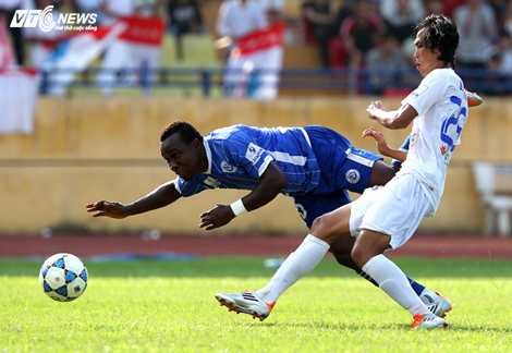 Phút 22, Olushola bất ngờ tung ra cú sút xa quyết đoán, đưa bóng đi chìm vào góc xa khung thành Minh Phong quân bình tỷ số cho đội bóng của bầu Đức.