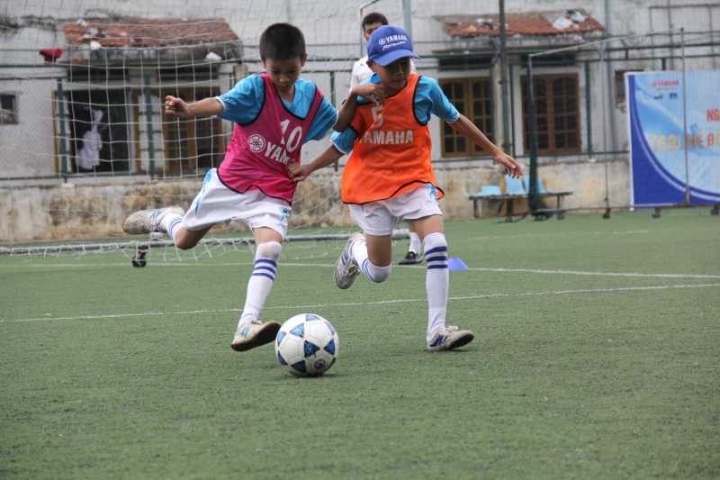 Trời mưa, thày và trò vẫn “thủy chiến” với bài tập về cảm giác bóng. Chỉ khi có sấm chớp, các em sẽ được tập trung trong khuôn viên có mái che, chơi các bài tập phản xạ cá nhân hoặc nhóm nhỏ. “Trong suốt 3 năm tổ chức, không có học viên nào bị say nắng, bị cảm, chấn thương nặng trong quá trình luyện tập hay bỏ về giữa chừng” – ông Hoàng Hà, Giám đốc Marketing Công ty Yamaha Motor Việt Nam cho biết.