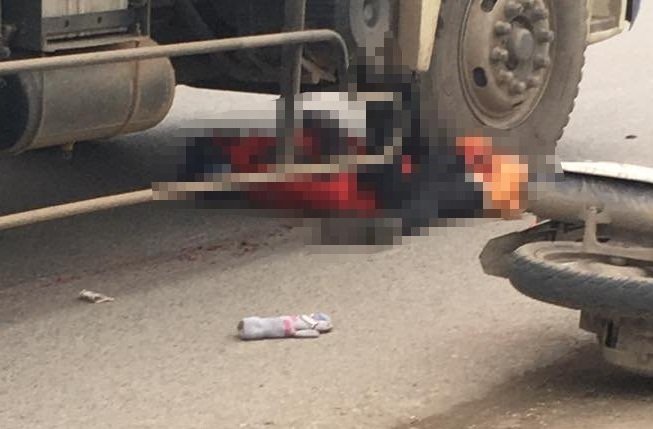 Cú va chạm khiến người phụ nữ ngã xuống đường, đúng lúc này xe tải đi tới không kịp xử lý, cán chết người này, còn người đi xe đạp bị thương nhẹ.