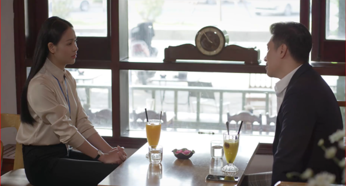 “Mình sẽ nói chuyện một lần và từ sau anh sẽ không làm phiền em nữa. Nhưng trước tiên mình sẽ đến phòng khám trước, khám thai”, Kiên nói sau khi tình cờ nghe được Ngọc (Quỳnh Kool) hỏi Châu chuyện có thai vì thấy que thử thai trong túi.