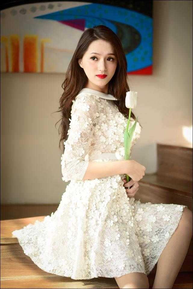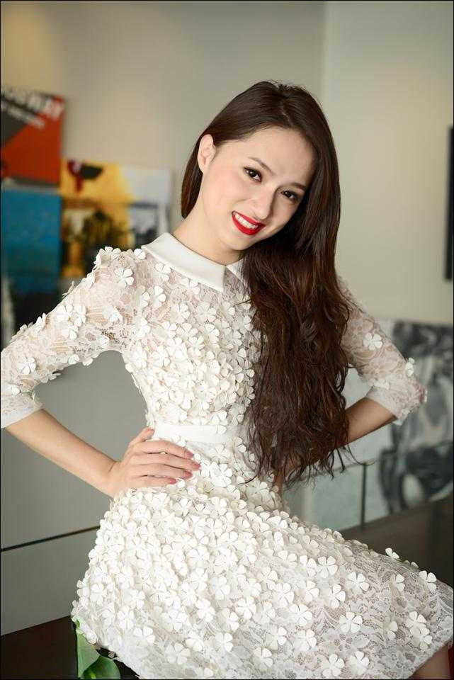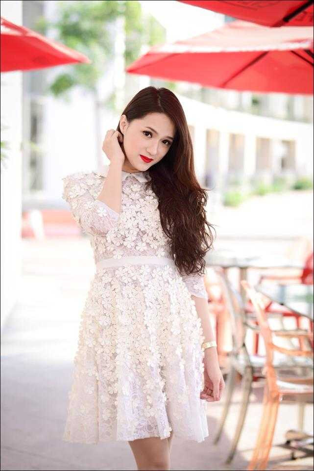 Với chiếc váy trắng, trông Hương Giang Idol thật nữ tính và dịu dàng.