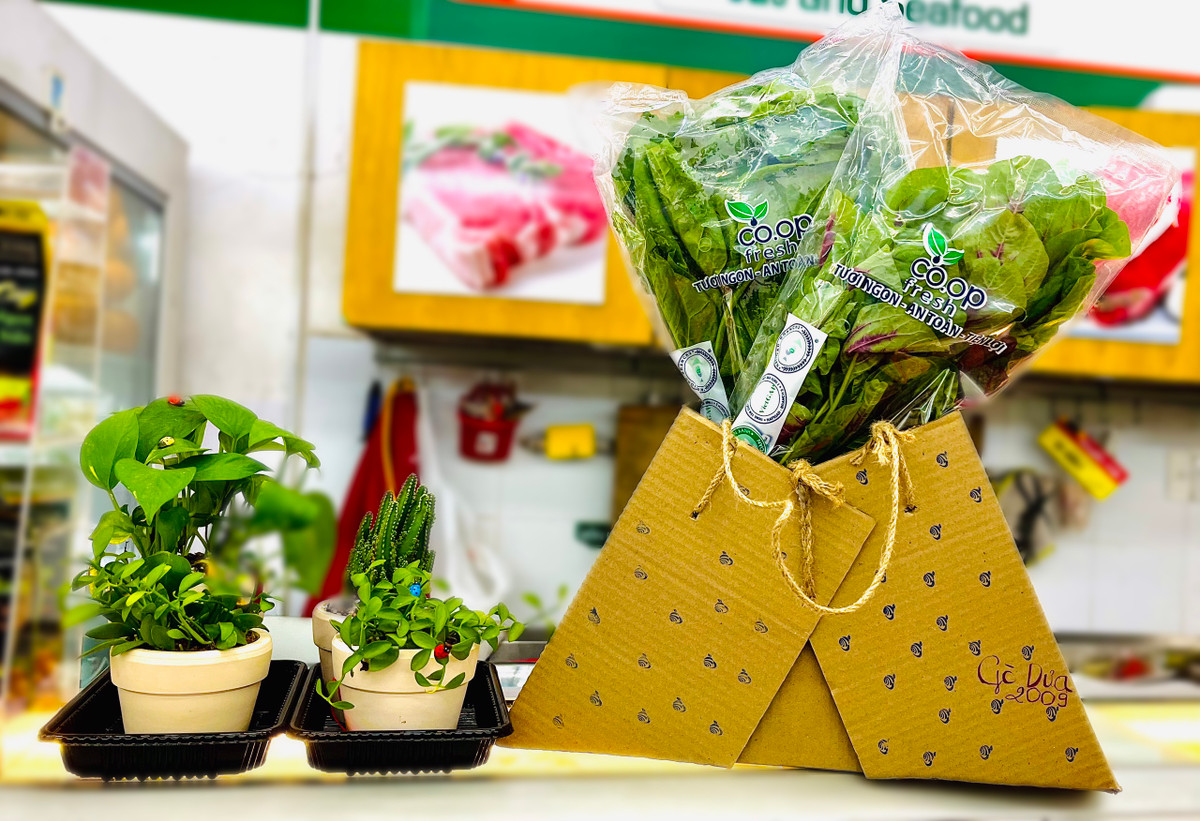 Bằng những vật dụng đã qua sử dụng và có khả năng tái chế như bìa cacton, giấy báo, bìa cứng, dây thừng, dây nilon… cùng với sự sáng tạo không giới hạn, tất cả nhân viên cửa hàng tại hệ thống Co.op Food tạo nên những chiếc túi giấy vô cùng xinh xắn, bắt mắt được trang trí một cách chỉnh chu, có sự đầu tư.