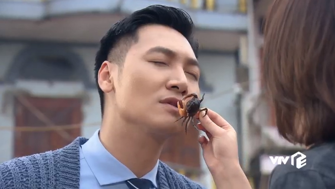 Cảnh Long nhắm mắt chờ được Nam hôn trong "Hương vị tình thân" tập 33.