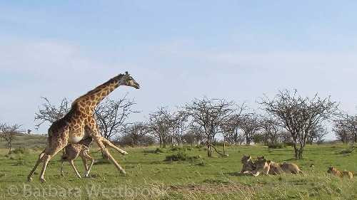 Hươu cao cổ mẹ liều mình bảo vệ con khỏi đàn sư tử