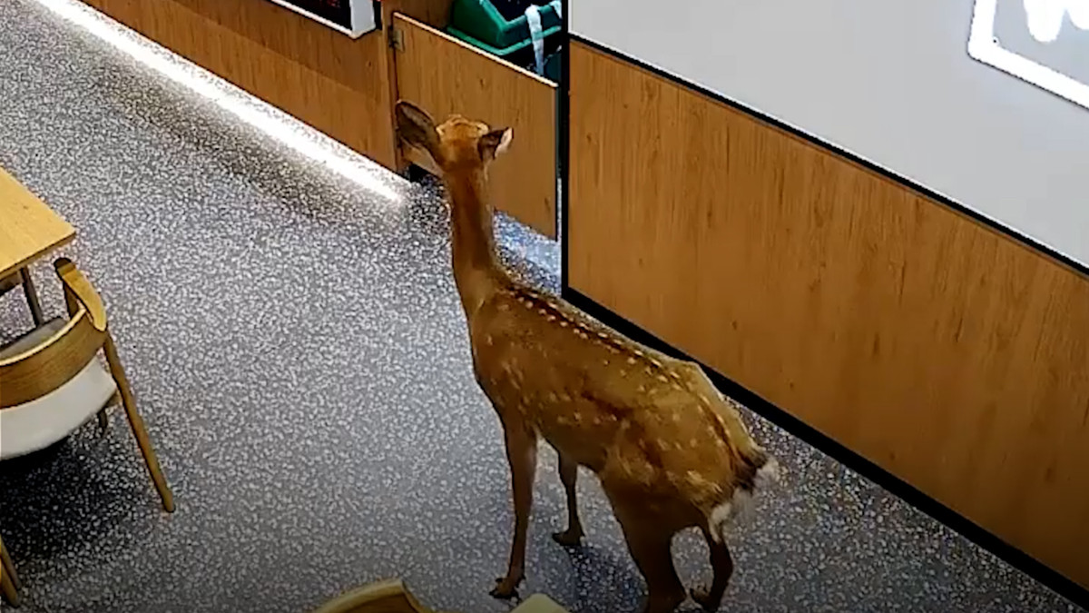 Hươu hoang dã bất ngờ chạy vào cửa hàng đồ uống ở Trung Quốc