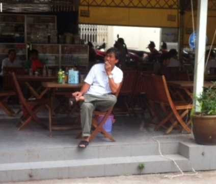 Một người dân vô tư hút thuốc tại căn tin của bệnh viện nhân dân 115 chiều 2/5 (ảnh: N.D)