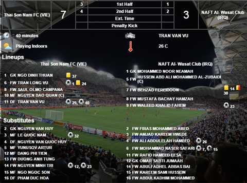 Nỗ lực của NAFT Al- Wasat chỉ giúp họ có được 2 bàn thắng trong hiệp 2 và trận đấu kết thúc với tỷ số thắng chung cuộc 7-3 nghiêng về đại diện của Việt Nam.