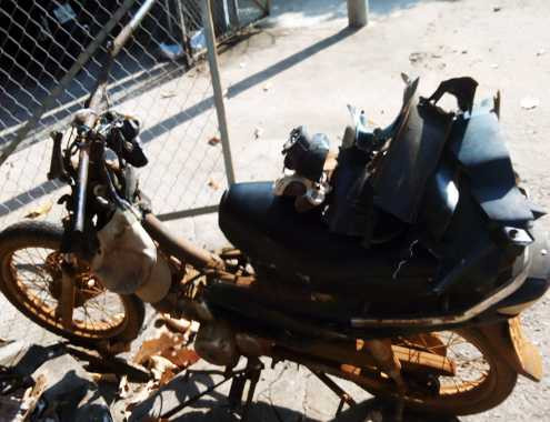 | Xe máy của hai cha con anh Linh bể nát sau vụ tai nạn.Ảnh: Xuân Mai. |