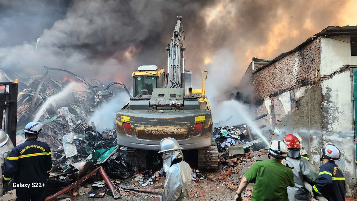 Nhận tin báo, hàng chục cán bộ, chiến sĩ lực lượng PCCC và CNCH có mặt tại hiện trường làm nhiệm vụ. Hai máy xúc cũng được huy động đến hiện trường phục vụ công tác chữa cháy.