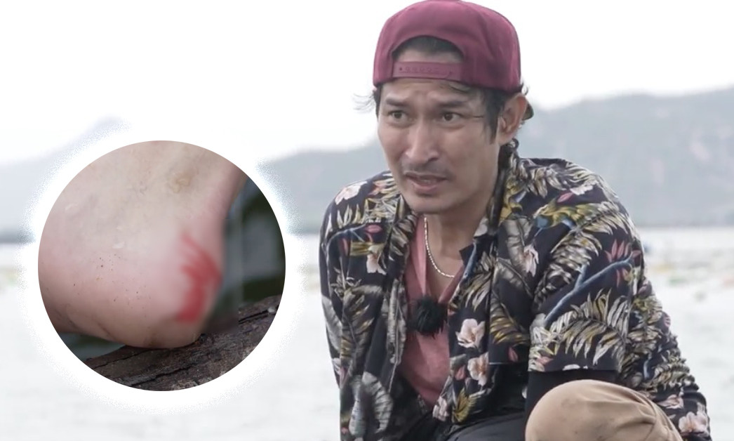 Vì quá tập trung cho công việc, Huy Khánh đã bị hàu cứa vào chân. Ban đầu, nam diễn viên cứ nghĩ chỉ bị trầy xước nhẹ, tuy nhiên khi ngó xuống đã thấy máu chảy nhiều.