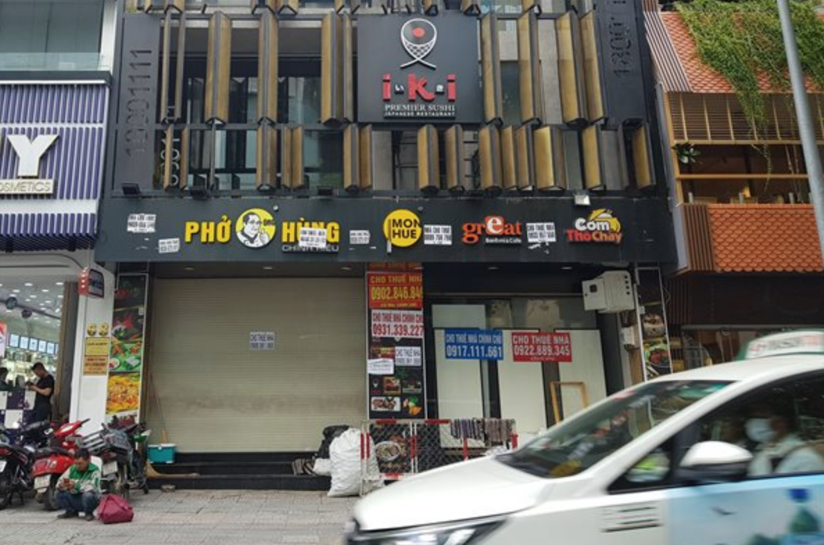 Một nhà hàng Món Huế trên đường Ngô Đức Kế, TPHCM, đến nay vẫn treo biển cho thuê. Cửa hàng này được cho là có doanh thu trong 12 tháng trước đó lên đến 25,6 tỉ đồng, ngày hết hạn cho thuê là 31/10/2022. Ảnh: V.D.