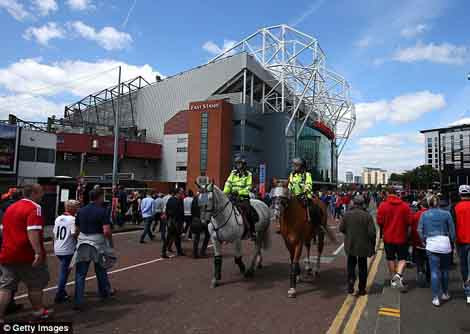 | Cảnh sát và chó săn được huy động đến sân Old Trafford |
