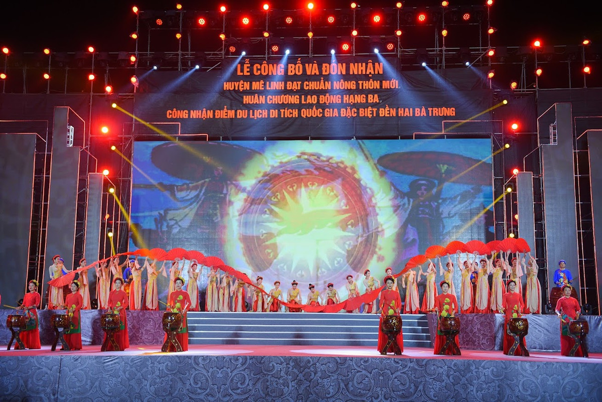 Tối 9/12, huyện Mê Linh (Hà Nội) tổ chức Lễ công bố và đón nhận Quyết định của Thủ tướng công nhận “Huyện Mê Linh, TP Hà Nội đạt chuẩn nông thôn mới năm 2020”, đón nhận Huân chương Lao động hạng Ba và công bố điểm du lịch Di tích Quốc gia đặc biệt Đền Hai Bà Trưng.