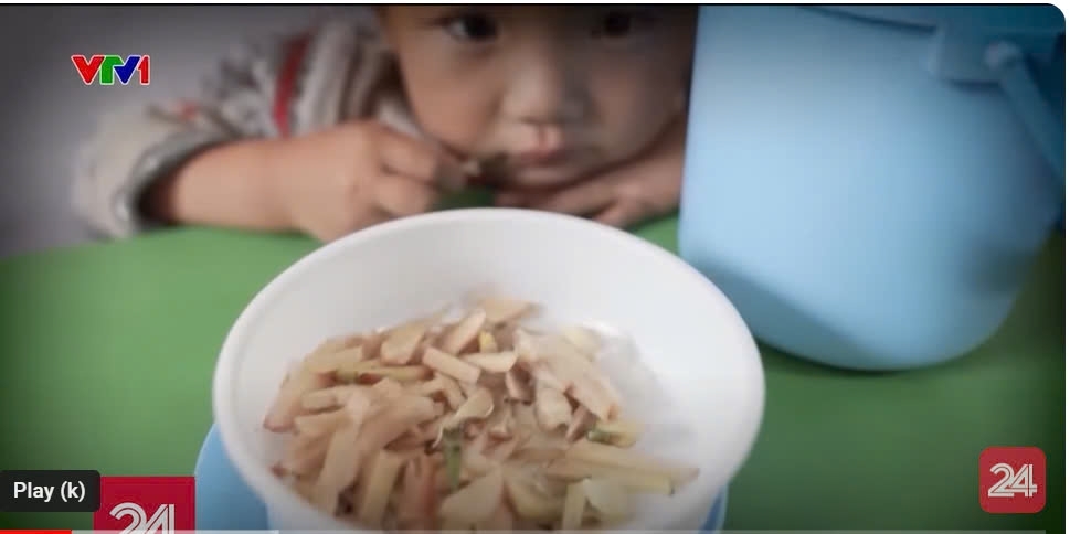 Hình ảnh bữa cơm trắng với gừng của một học sinh điểm trường Màng Mủ được ghi lại trong phóng sự.