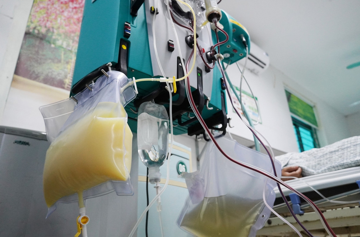 Bác sĩ chỉ định lọc máu thay huyết tương. Sau hơn 2 giờ lọc máu và thay thế huyết tương bằng albumin, 5000 ml huyết tương có màu trắng đục được đưa ra ngoài cơ thể. Hiện tại, bệnh nhân đỡ mệt, đỡ đau bụng, các chỉ số xét nghiệm trở về gần với mức bình thường, tiếp tục được theo dõi và điều trị tại khoa cấp cứu.