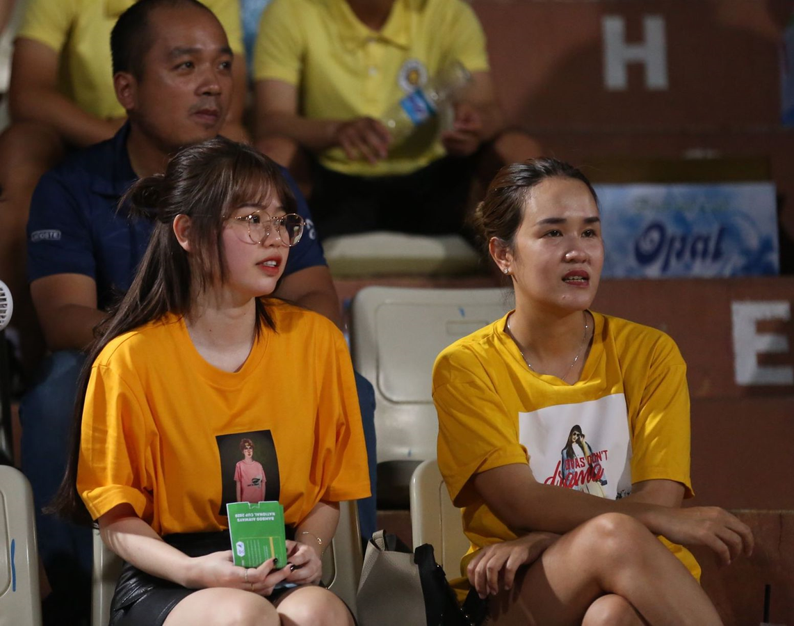 Huỳnh Anh (trái) đến sân cổ vũ Quang Hải thi đấu.