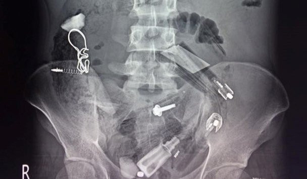 Các bác sĩ chụp Xquang và phát hiện rất nhiều dị vật trong cơ thể bệnh nhân