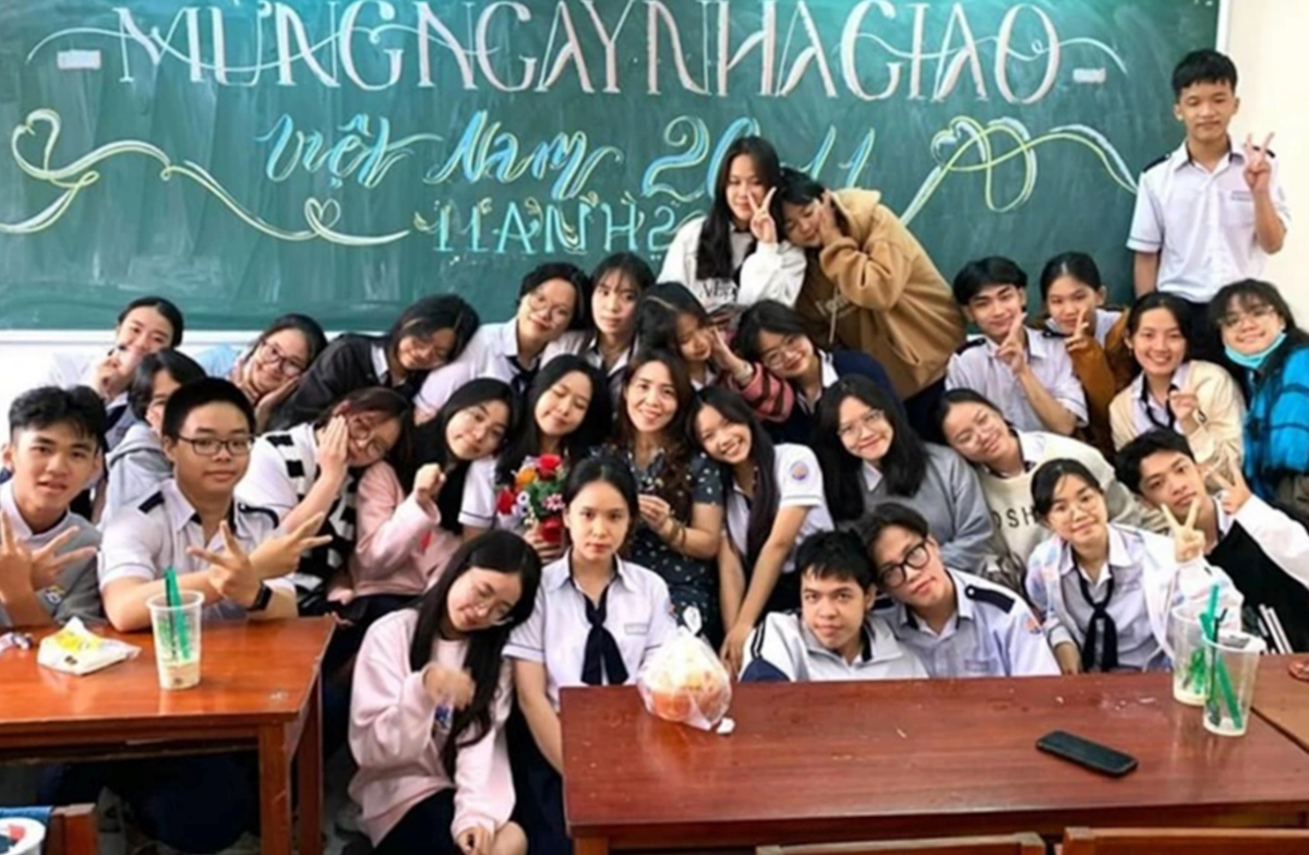 Một nữ sinh lớp 10 chuyên hóa chia sẻ, lần đầu tiên em nhận được tiền của trường để liên hoan với thầy cô trong ngày này, nên đã mua bánh kẹo, trà sữa để cùng vui. “Hành động này khiến em thêm yêu quý ngôi trường mình đang theo học”, nữ sinh bày tỏ.